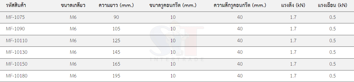 พุกเมทัลเฟรม รุ่น MF จาก Fastenic