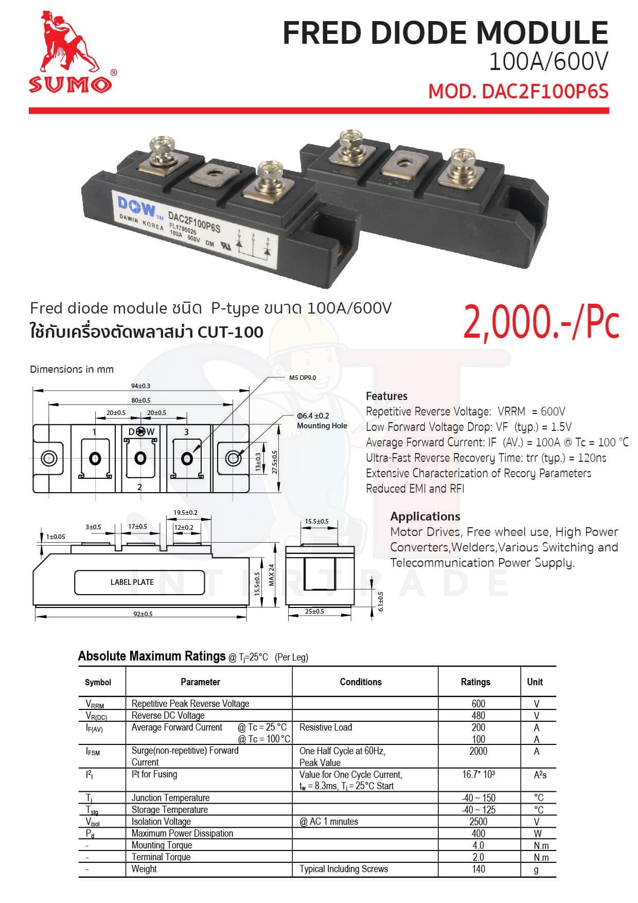 FRED DIODE MODULE 100A600V รุ่น DAC2F100P6S