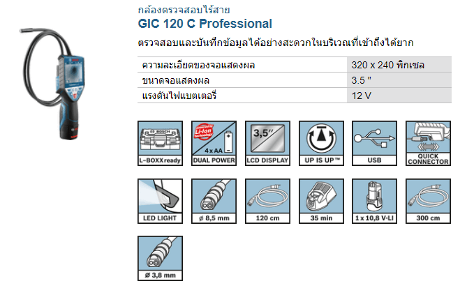 BOSCH กล้องสำรวจไร้สาย ขนาด 8 ม.ม. (บันทึกและถ่ายภาพได้) รุ่น GIC 120 C