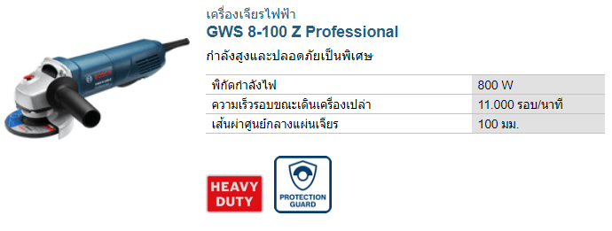 GWS 8-100 Z BOSCH เครื่องเจียร4″ สวิทซ์มือบีบ