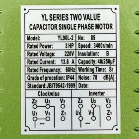 • กำลังไฟ 1 เฟส 220 โวลต์ (13.6 แอมป์) / 50Hz