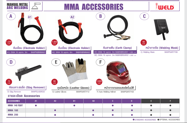 | กระแสไฟเชื่อม (Amp) | 20-180 |