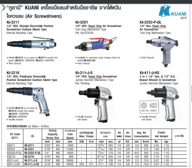 KI-3231 ไขควงลม 1/4″ ตรง TWIN DOG