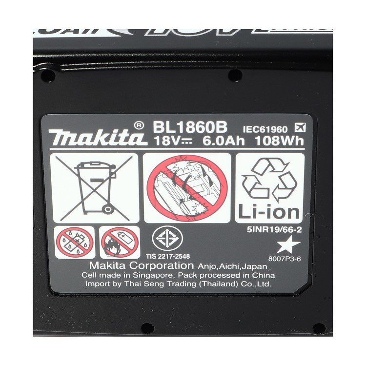 • BL1860B แบตเตอรี่ ลิเธียมไอออน 18V พร้อมไฟ LED แสดงสถานะแบตเตอรี่