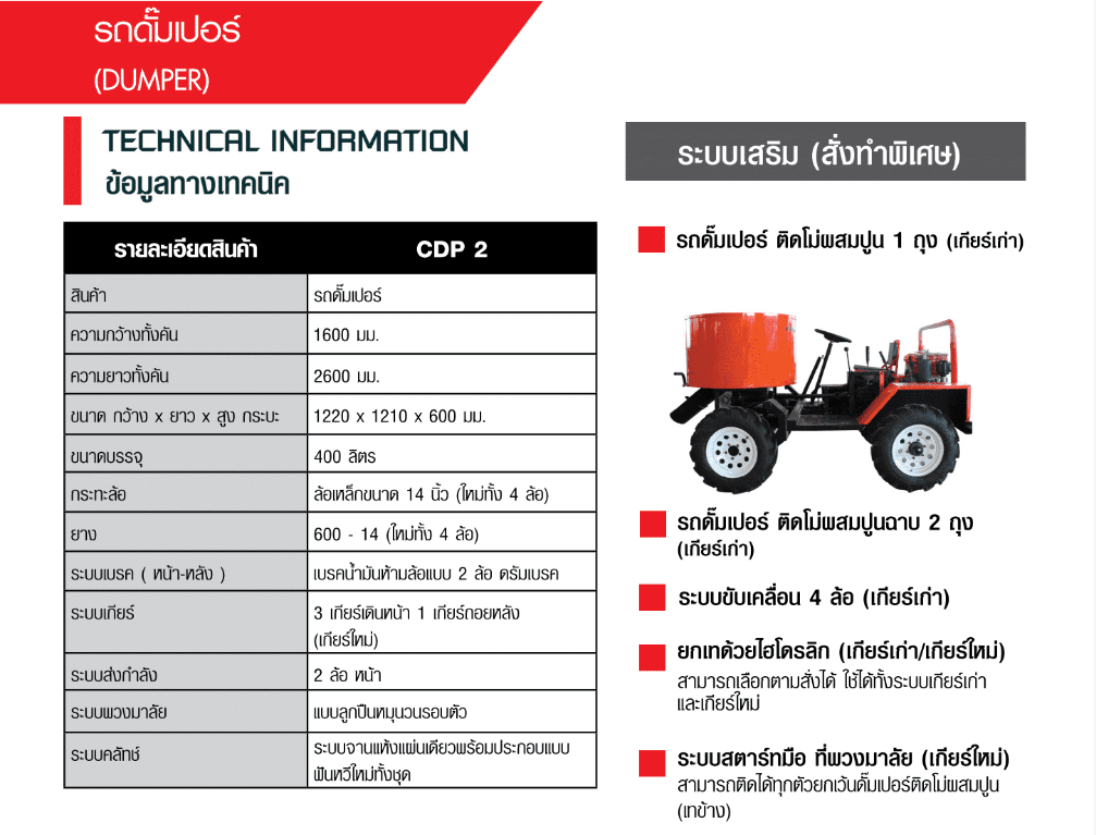 รถดั๊มเปอร์ Marton (Dumper) เหมาะสำหรับสายงานก่อสร้าง ถูกออกแบบมาเพื่อรองรับการใช้งานได้หลากหลายประเภท (มีระบบเสริม สั่งทำพิเศษได้สำหรับหน้างานของท่าน)