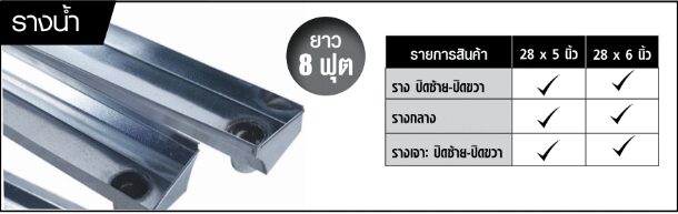 | รายการสินค้า | 25 x 5 นิ้ว | 30 x 5 นิ้ว | 32 x 5 นิ้ว | 28 x 6 นิ้ว | 30 x 6 นิ้ว |