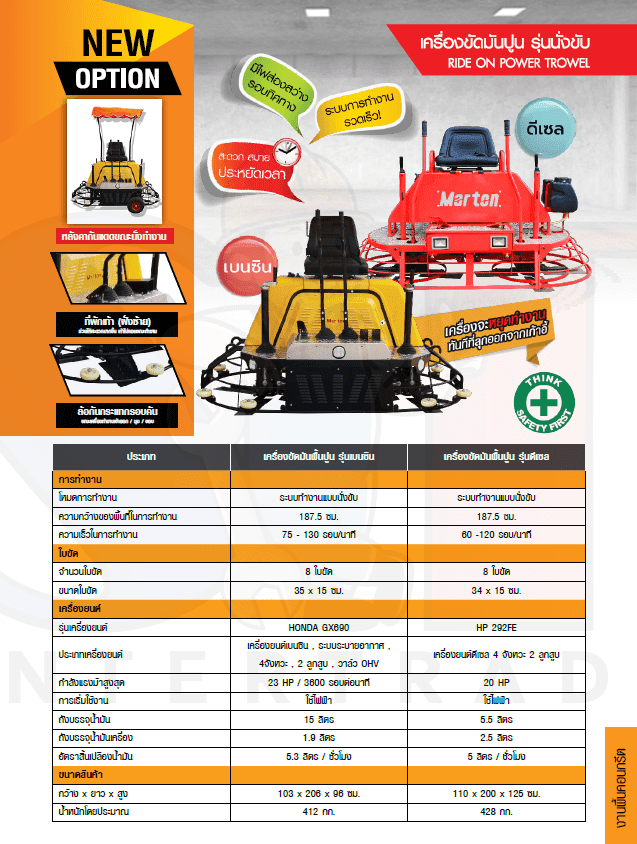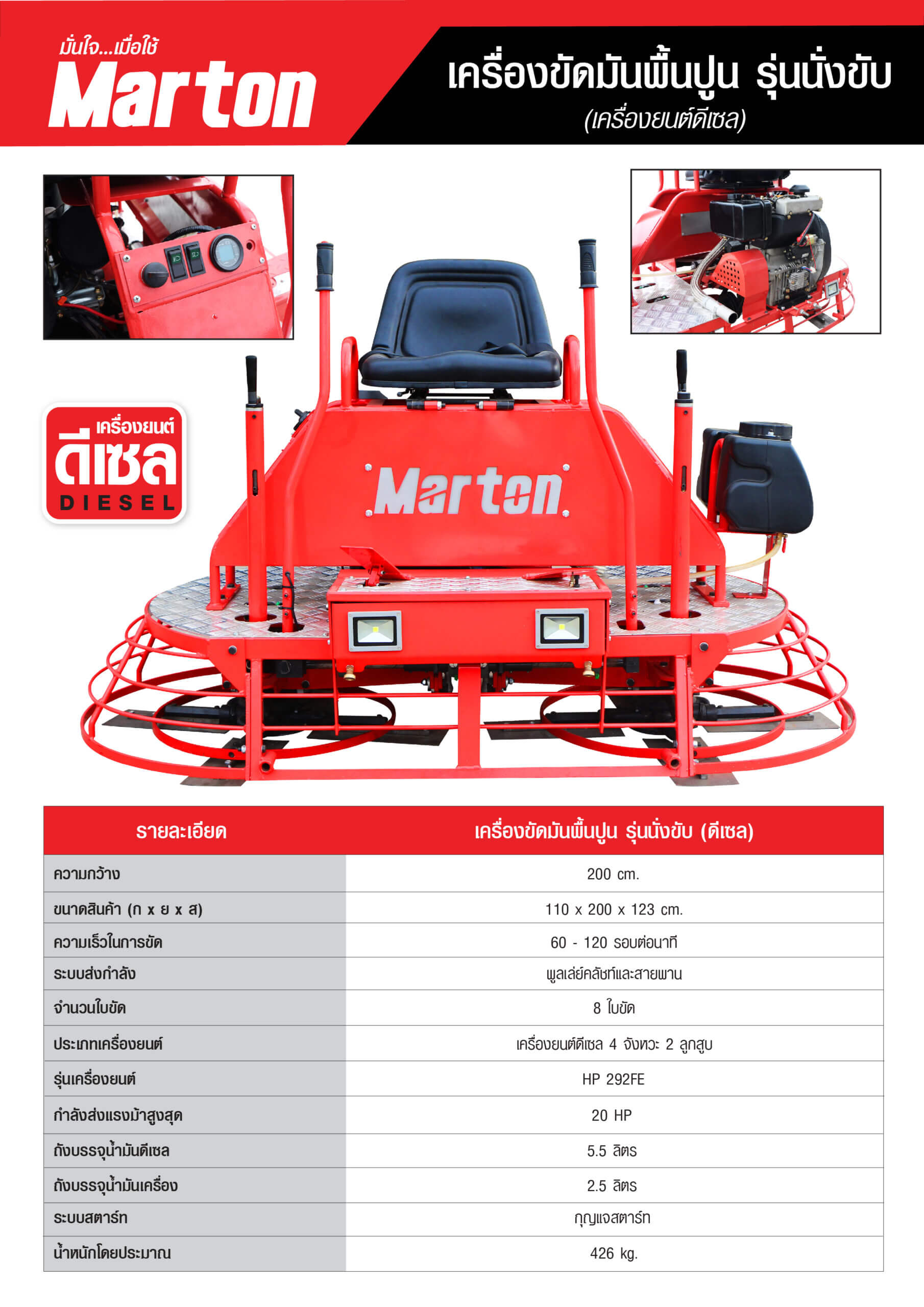 รุ่นสินค้า | เครื่องขัดมันพื้นปูนMARTON รุ่นนั่งขับ (ดีเซล) |
