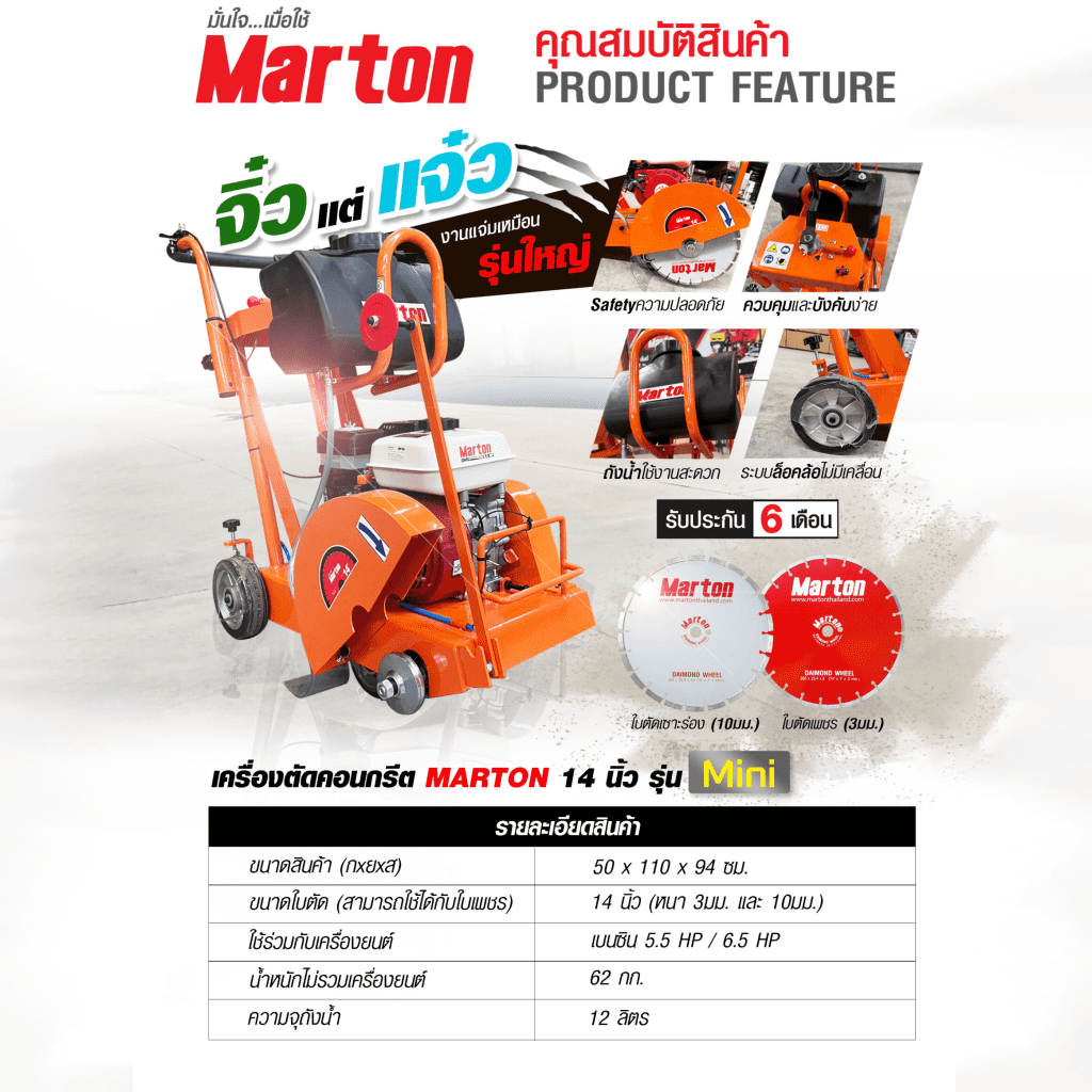 MARTON เครื่องตัดคอนกรีต 14 นิ้ว รุ่น MINI (ไม่รวมใบตัด)