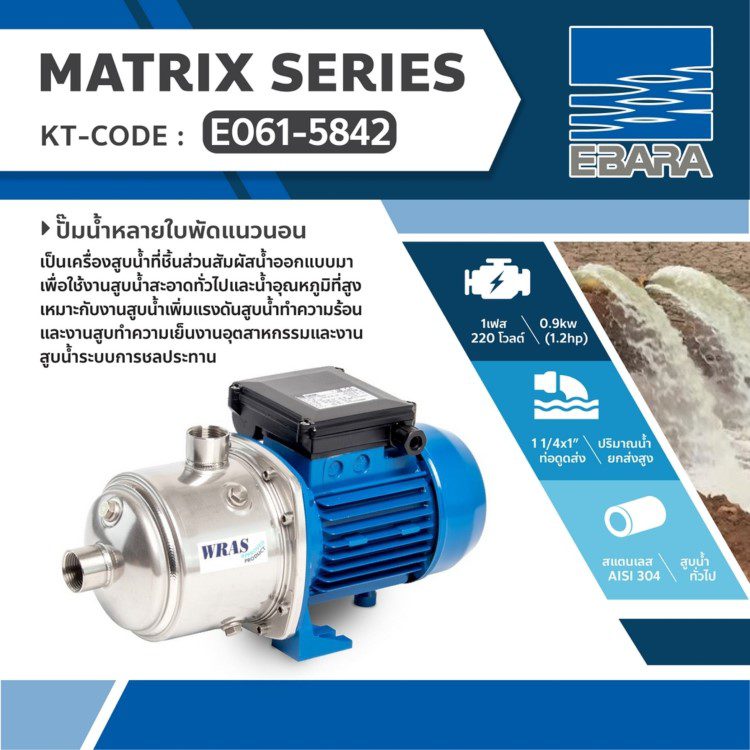 MATRIX 5-4T/0.9M ปั๊มน้ำหลายใบพัดแนวนอน