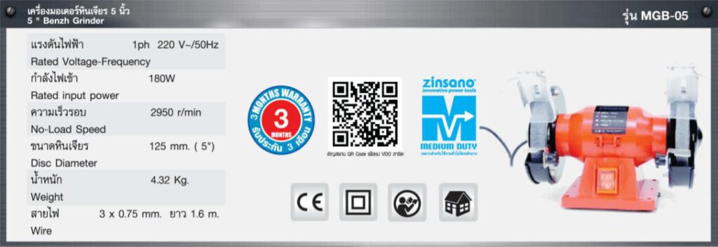 MGB-05 – เครื่องมอเตอร์หินเจียร 5 นิ้ว ZINSANO