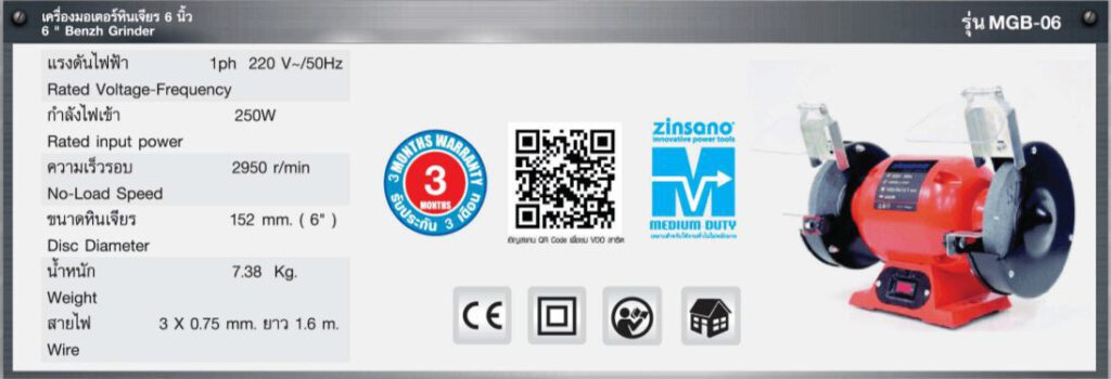 ZINSANO – เครื่องมอเตอร์หินเจียร 6 นิ้ว MGB-06