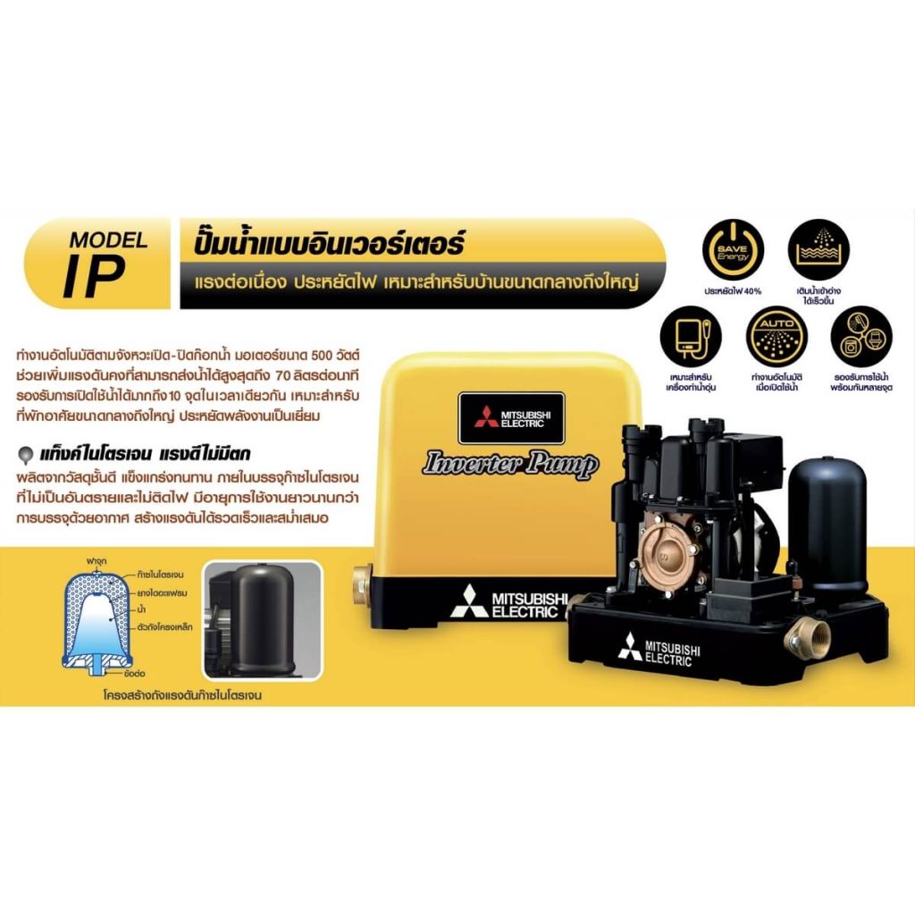 MITSUBISHI ปั๊มน้ำอินเวอร์เตอร์ รุ่น IP-505R2 ขนาด 500 วัตต์ สำหรับบ้านขนาดใหญ่ รองรับการใช้น้ำถึง 10 จุด (มิตซูบิชิ)
