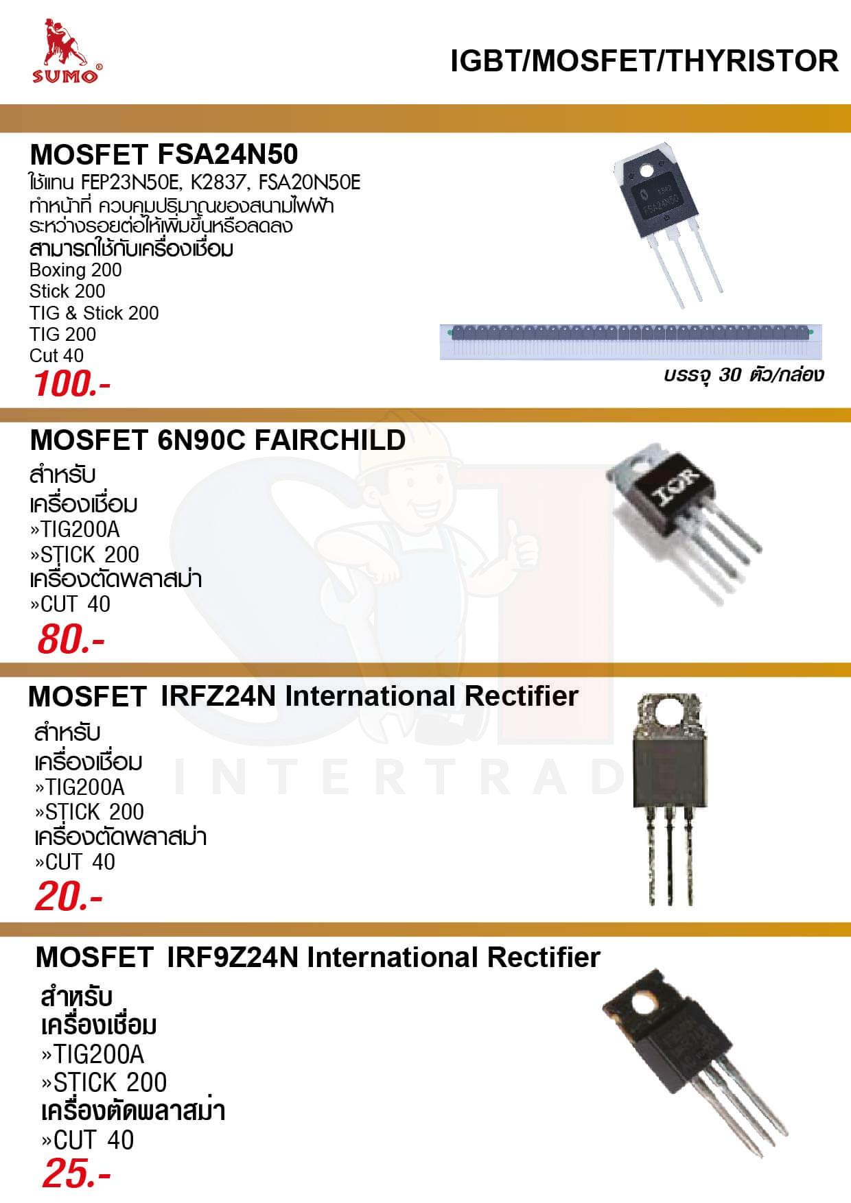 มอสเฟต Mosfet FSA24N50 SUMO ใช้แทน FEP23N50E, K2837, FSA20N50E ทำหน้าที่ ควบคุมปริมาณของสนามไฟฟ้าระหว่างรอยต่อให้เพิ่มขึ้นหรือลดลง