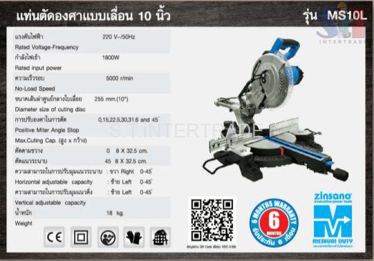 ZINSANO – แท่นตัดองศาแบบเลื่อน 10 นิ้ว รุ่น MS10L2