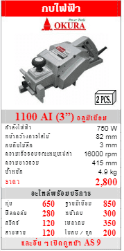OKURA กบไฟฟ้า 1100 AI (3”) อลูมิเนียม