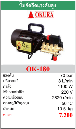 OKURA ปั๊มอัดฉีดแรงดันสูง รุ่น OK-180
