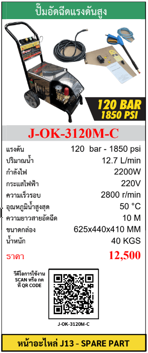 OKURA ปั๊มอัดฉีดแรงดันสูง รุ่น J-OK-3120M-C