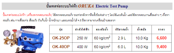 OKURA ปั๊มเทสท่อไฟฟ้า รุ่น OK-25OP