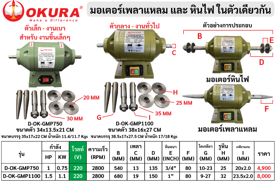 OKURA มอเตอร์เพลาแหลม รุ่น D-OK-GMP750