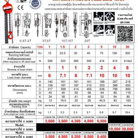 มาตรฐานประเทศญี่ปุ่น มีขนาดที่เหมาะมือ เหมาะแก่การใช้งานทั่วไป มีหลายรุ่น แยกตามขนาดของกำลังยก ทนทานต่อการกัดกร่อนของสนิมและสารเคมี รวมถึงน้ำเค็ม ความยาวโซ่สามารถปรับเปลี่ยนตามการใช้งานได้ โดยการเพิ่มโซ่ตามขนาดความยาวที่ต้องการใช้งาน