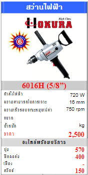 OKURA สว่านไฟฟ้า 6016H (5/8”)