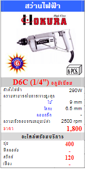 OKURA สว่านไฟฟ้า D6C (1/4”) อลูมิเนียม