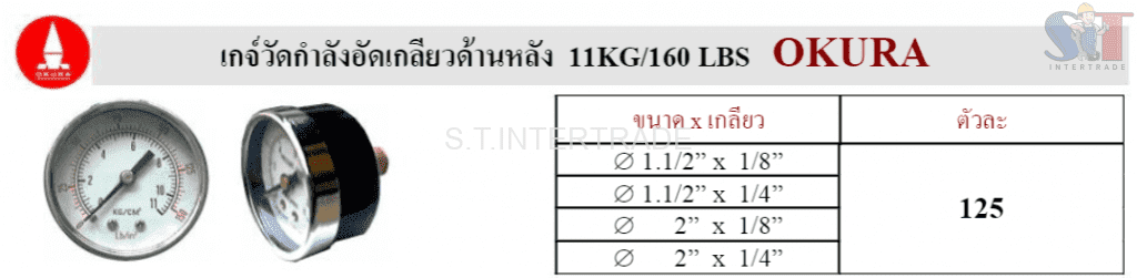 OKURA เกจ์วัดกำลังอัดเกลียวด้านหลัง