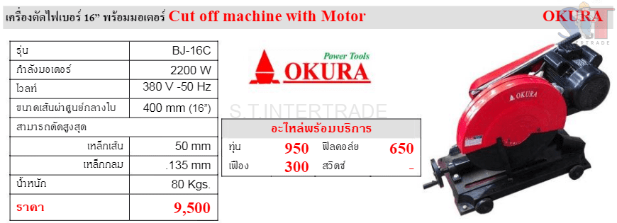OKURA เครื่องตัดไฟเบอร์ 16″ พร้อมมอเตอร์ รุ่น BJ-16C