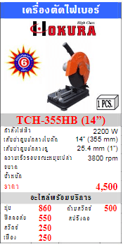 Okura เครื่องตัดไฟเบอร์ TCH-355HB 14”
