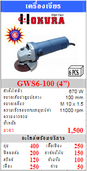 OKURA เครื่องเจียร GWS6-100 (4”)