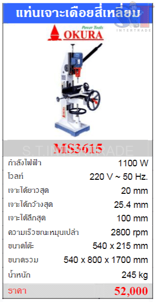 OKURA แท่นเจาะเดือยสี่เหลี่ยม รุ่น MS3615