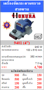 OKURA 9401 เครื่องขัดกระดาษทรายสายพาน 4″ 940W
