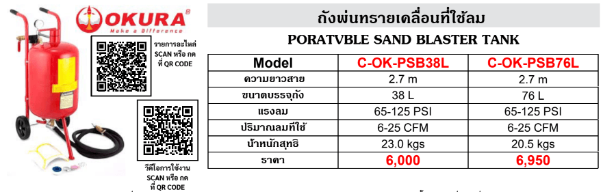 OKURA C-OK-PSB38L ถังพ่นทรายเคลื่อนที่ ใช้ลม