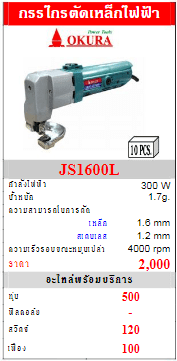 OKURA JS-1600L กรรไกรตัดเหล็กไฟฟ้า 300W