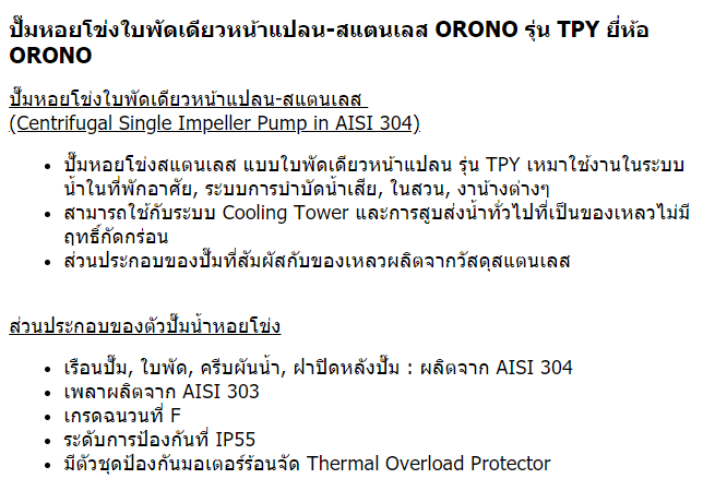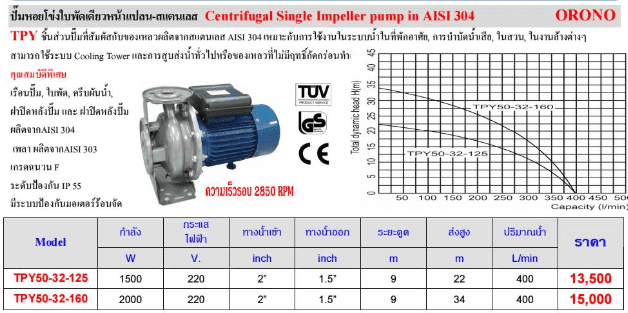 ORONO รุ่น TPY 50-32-125 ปั๊มหอยโข่งใบพัดเดียว