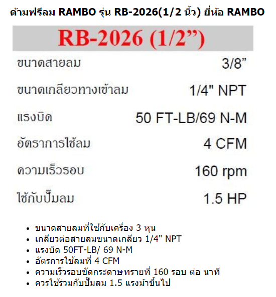 RAMBO ด้ามฟรีลม รุ่น RB-2026