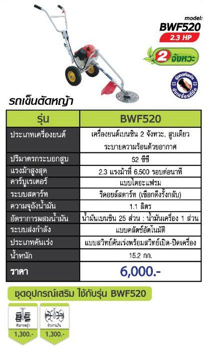 SAKARI BWF520 รถเข็นตัดหญ้า สูบเดียว เครื่องยนต์เบนซิน 2จังหวะ 52cc