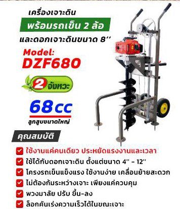 เครื่องขุดดิน เครื่องเจาะดิน เครื่องขุดหลุมเป็นเครื่องมือสำหรับขุดเจาะดินหรือขุดหลุมซึ่งมีประโยชน์กับผู้ใช้งานเพราะง่ายสะดวก รวดเร็ว ทุ่นแรง ประหยัดแรงงานคน เป็นเครื่องยนต์ที่การทำงานคล้ายสว่านเจาะดิน เหมาะสำหรับการขุดเจาะดินเพื่อปลูกต้นไม้ การขุดหลุมเจาะดินเพื่อการทำเสารั้วหรือเสาบ้าน เสาไฟฟ้า ปักเสาล้อมเขตที่ดิน ปักเสาสำหรับปลูกพืช และอื่นฯ