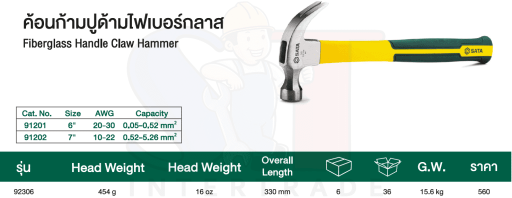 SATA ค้อนหัวกลมด้ามก้ามปูไฟเบอร์กลาส