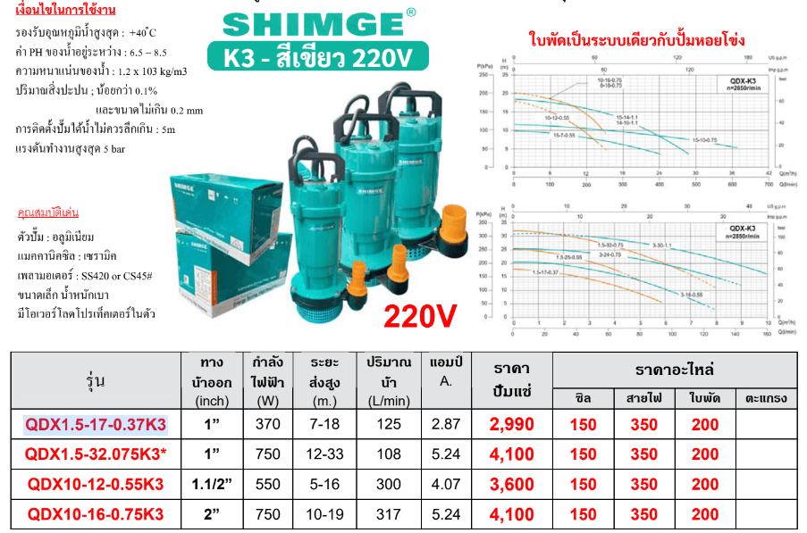 SHIMGE ปั๊มแช่ อลูมิเนียม QDX10-16-0.75K3