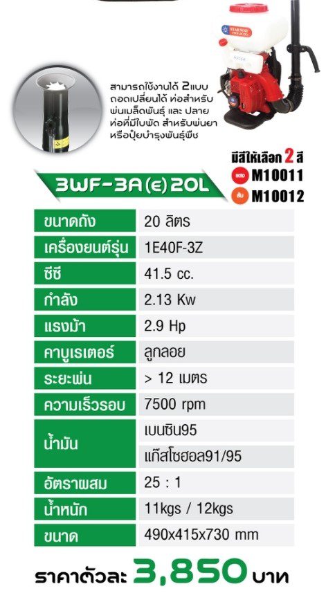 Starway เครื่องพ่นยา พ่นเมล็ด-พ่นปุ๋ย สะพายหลังแบบพัดลม รุ่น 3WF-3A(E)20L