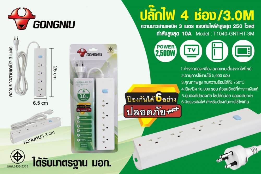 กงหนิว ปลั๊กสายไฟ 1 สวิตซ์ปิด/เปิด 4ช่อง