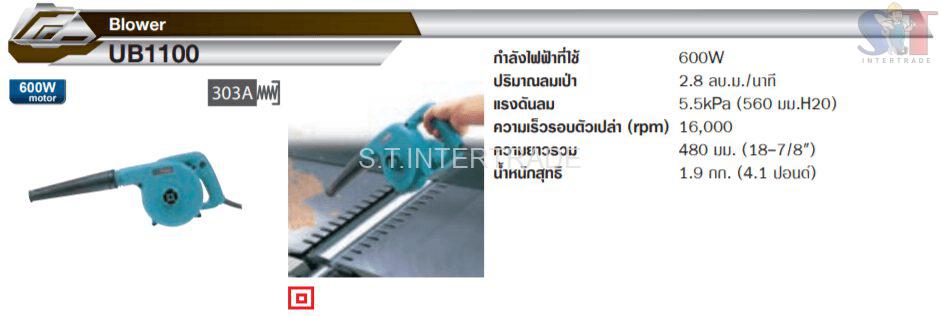 เครื่องเป่าลม มากีต้า รุ่น UB1100 คุณสมบัติ- เป่าแรง ด้วยมอเตอร์ประสิทธิภาพสูง
