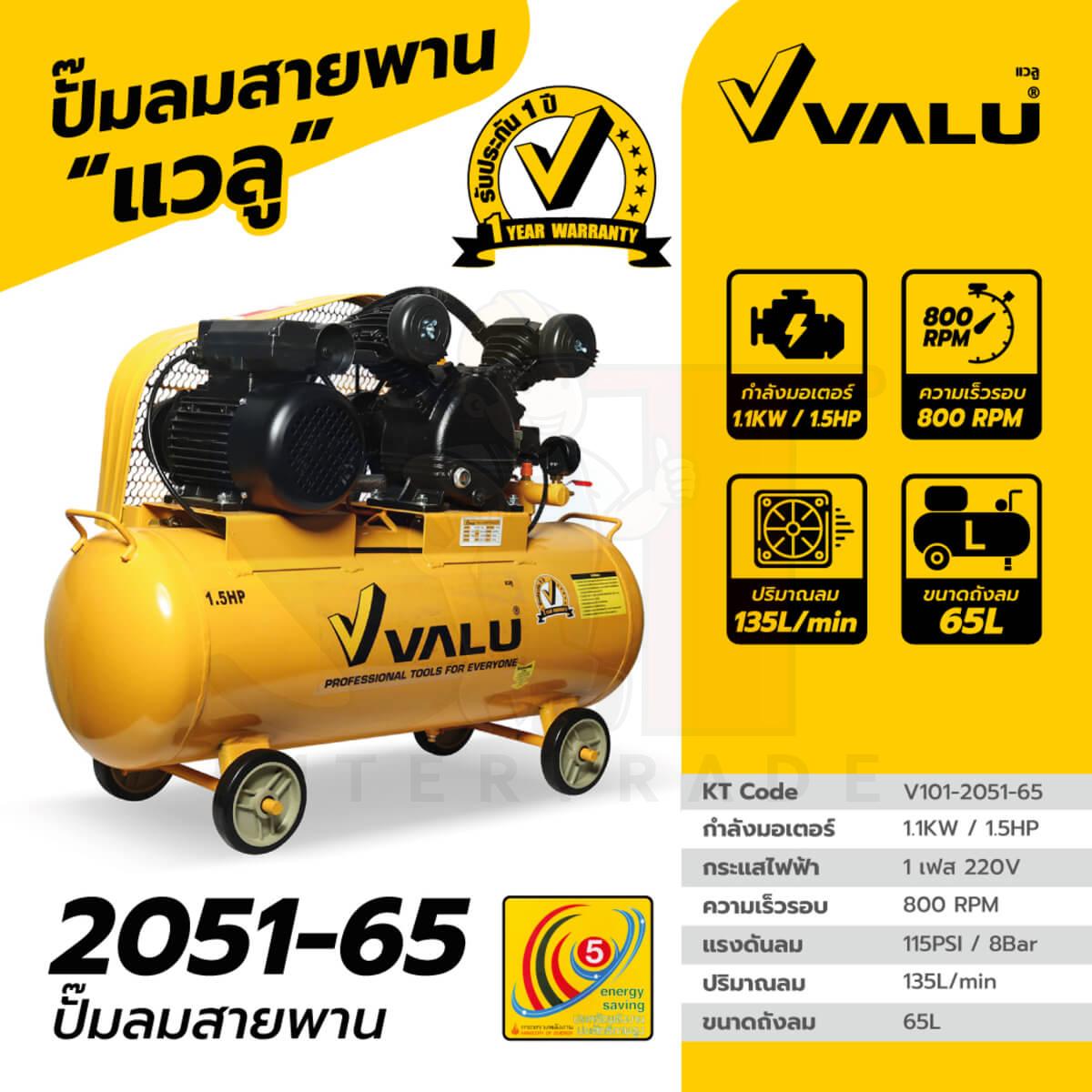 VALU 2051-65 ปั๊มลมสายพาน 65L 1/5HP