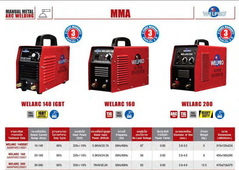 WELPRO – WELARC 160 เครื่องเชื่อมอินเวอร์เตอร์ เวลโปร รุ่น เวลอาร์ค 160 / ( เชื่อมไฟฟ้า , เชื่อมธูป )