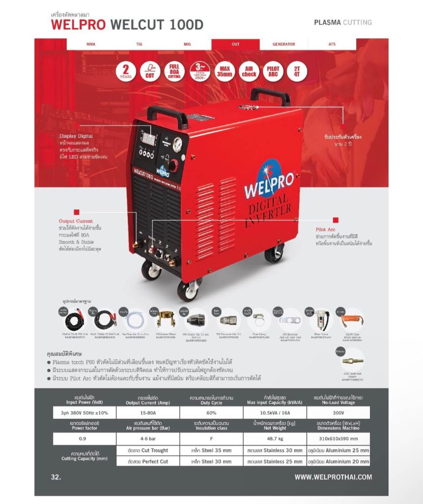 เครื่องตัดพลาสมาอินเวอร์เตอร์ เวลโปร รุ่น เวลคัท 100D / ( ตัดพลาสมา ) WELCUT100D