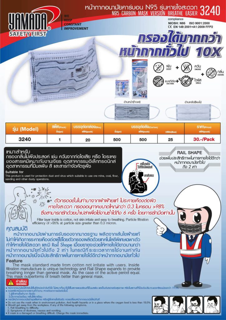 YAMADA หน้ากากอนามัย ผสมคาร์บอน N95 รุ่น 3240