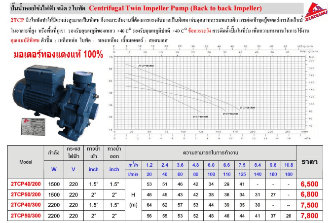 ZUZUMI ปั๊มน้ำหอยโข่งไฟฟ้าชนิด 2 ใบพัด 2TCP40/200