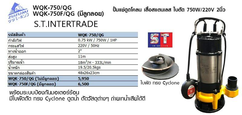 ZUZUMI ปั้มแช่ดูดโคลน เสื้อสแตนเลส WQK-750F/QG