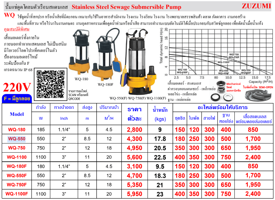 ZUZUMI ปั๊มสูบน้ำเสีย รุ่น WQ-550